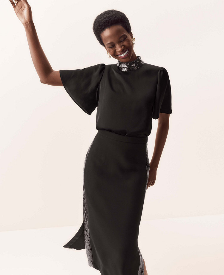 Product Item: Petite glitter midi new arrivals skirt