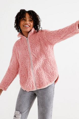 Pink teddy bear bomber new arrivals jacket