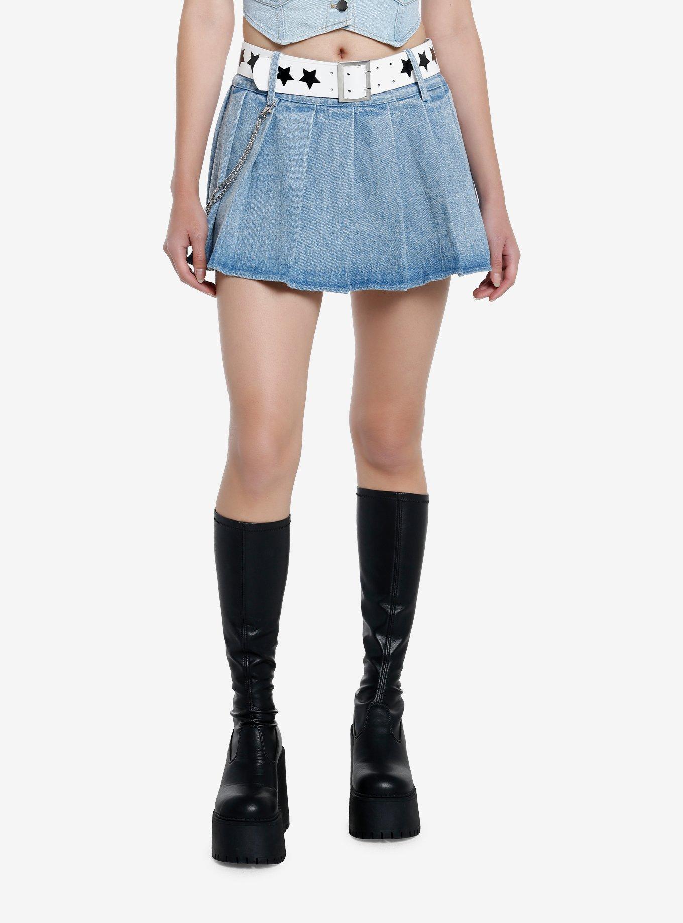 Product Item: Pleated denim skirt with new arrivals belt