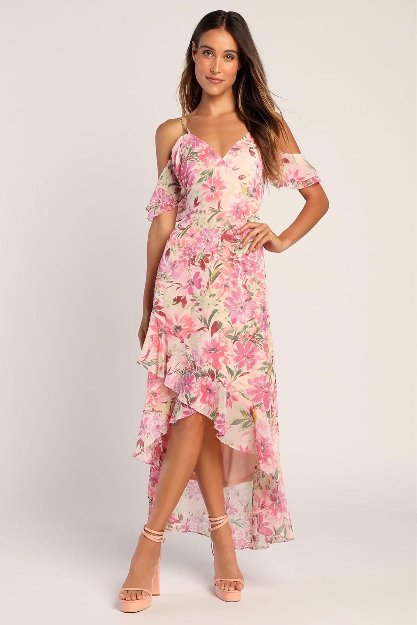 Ruffle cold shoulder new arrivals high low midi