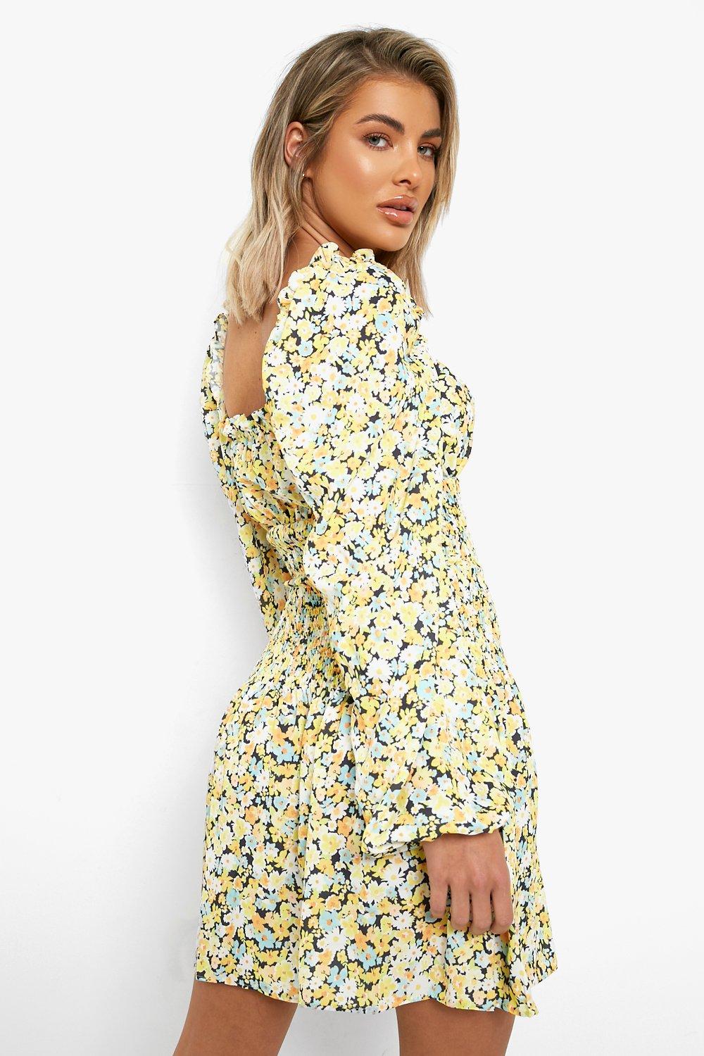 Shirred long sleeve new arrivals dress