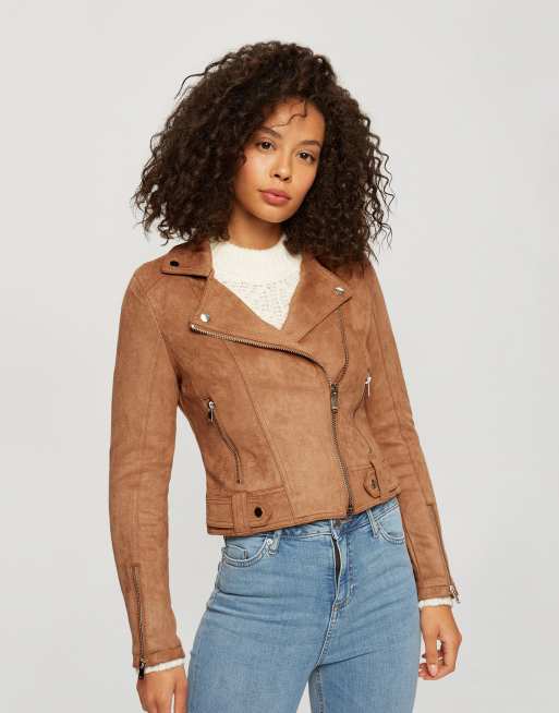Tan faux suede moto new arrivals jacket