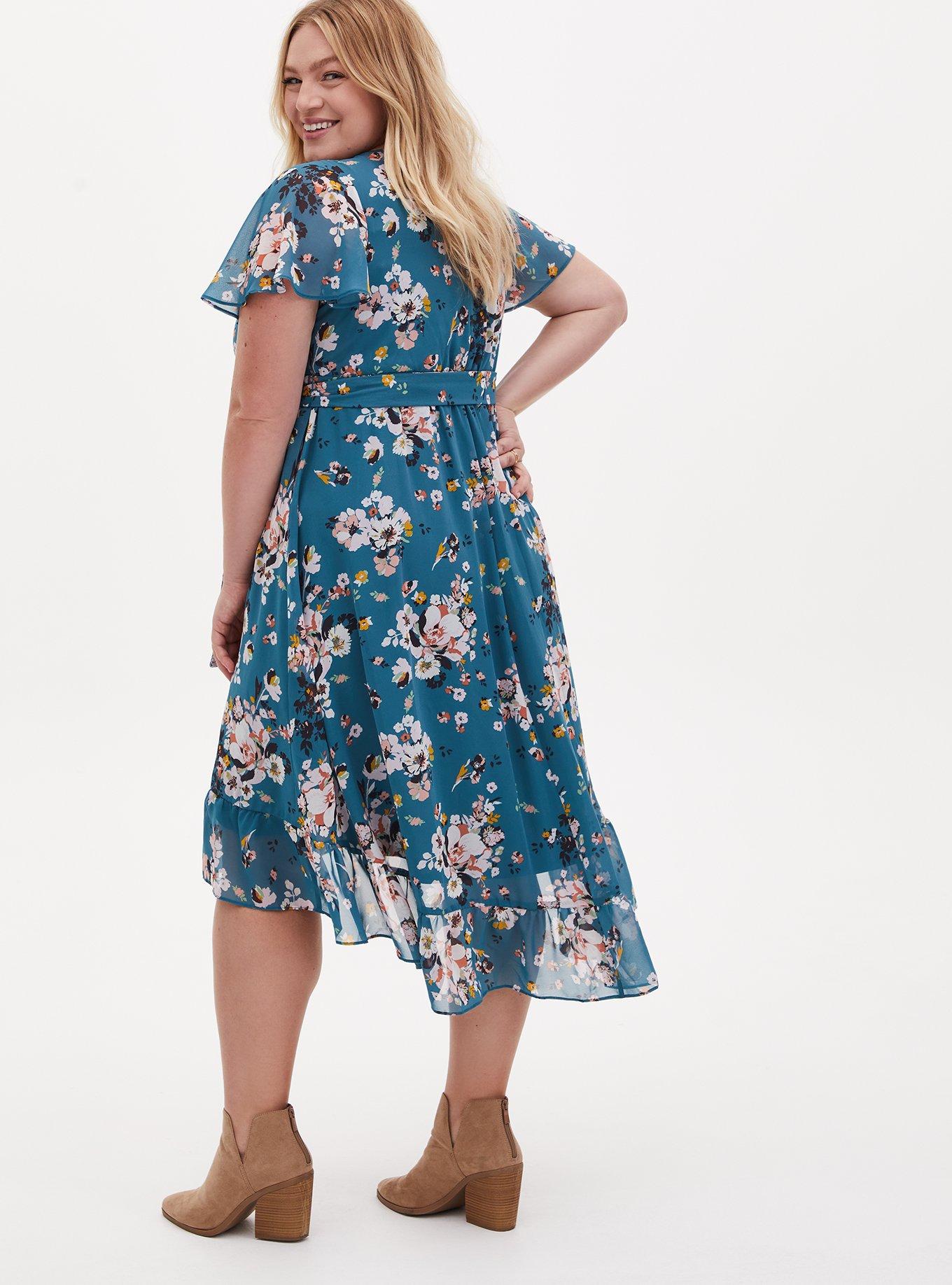 Teal floral wrap new arrivals dress