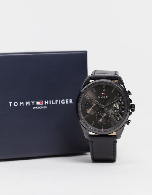 Tommy hilfiger watch new arrivals men's black leather strap