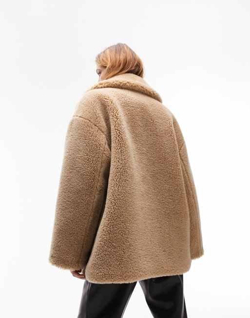 Topshop camel coat new arrivals with fur collar
