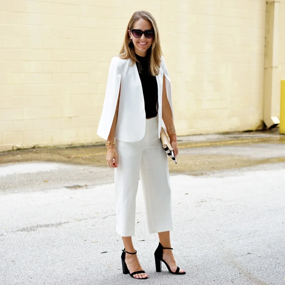 White cape blazer new arrivals outfit