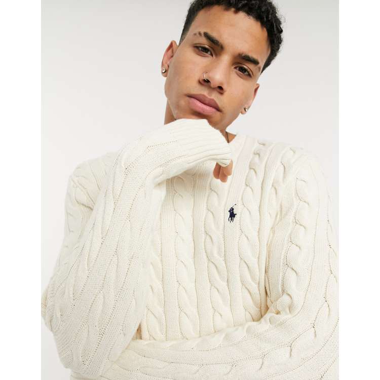 White cotton cable knit new arrivals sweater