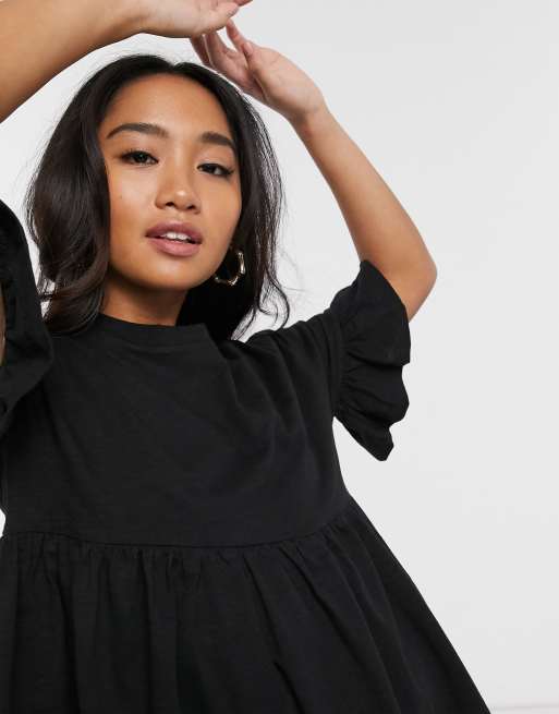 Asos design cotton slubby frill sleeve smock new arrivals dress