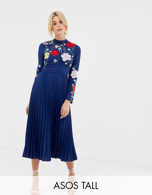 Asos design pleated new arrivals embroidered midi dress