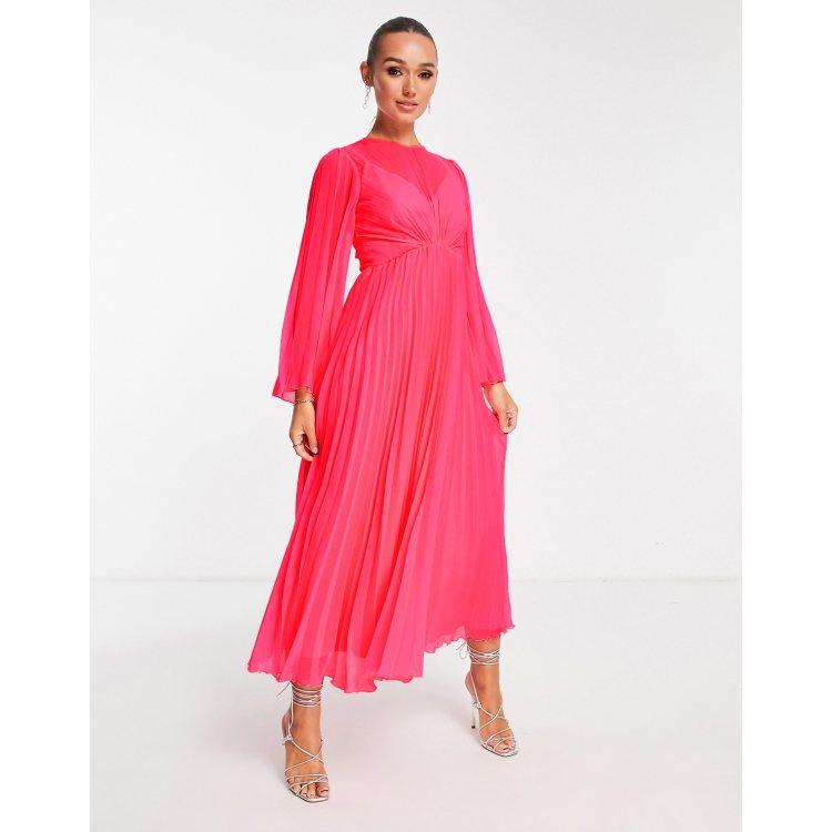 Asos design pleated midi dress with new arrivals fluted long sleeve in floral print