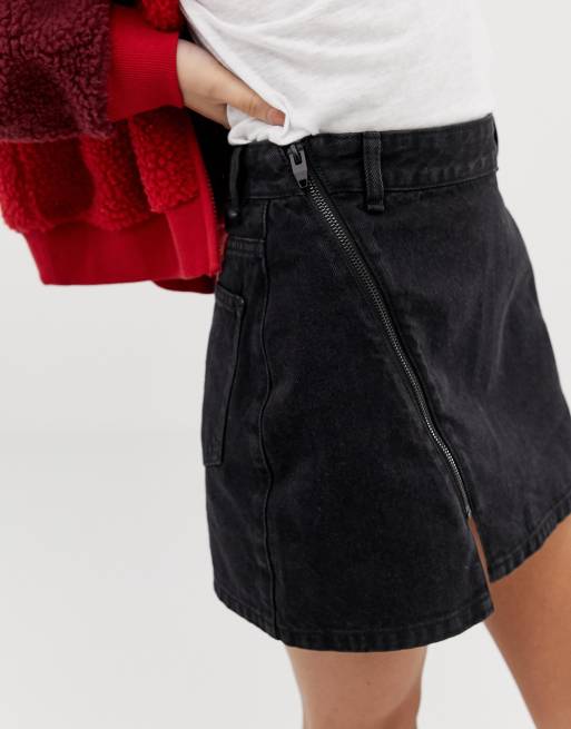 Black denim skirt new arrivals zip